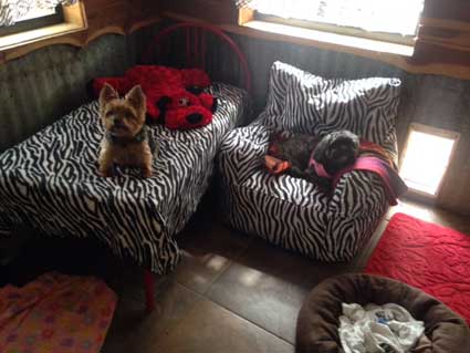 Facilities: Spacious doggie rooms with comfy beds and music. Doggie doors that go out onto a big deck or patio with plenty of shade. Constant supervision 24/7.